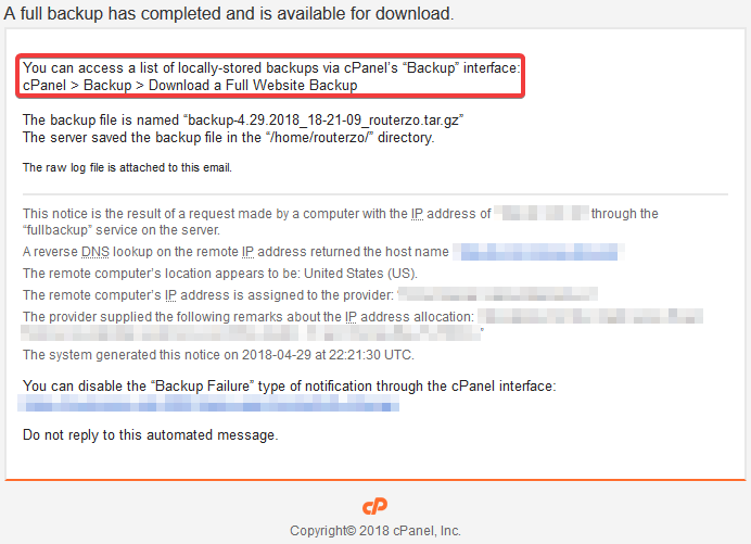 Once you receive the notification email, follow the instructions to download a copy of your backup file: