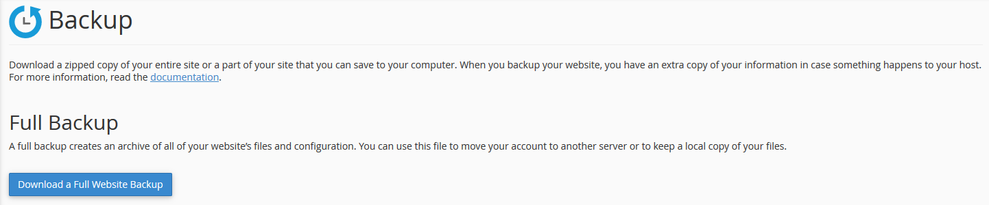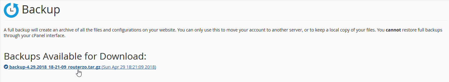 Click on the Download a Full Website Backup and then click on the backup file name to download the backup file.