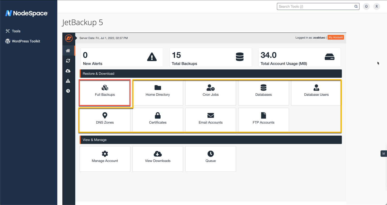 Login to cPanel and click on JetBackup 5.