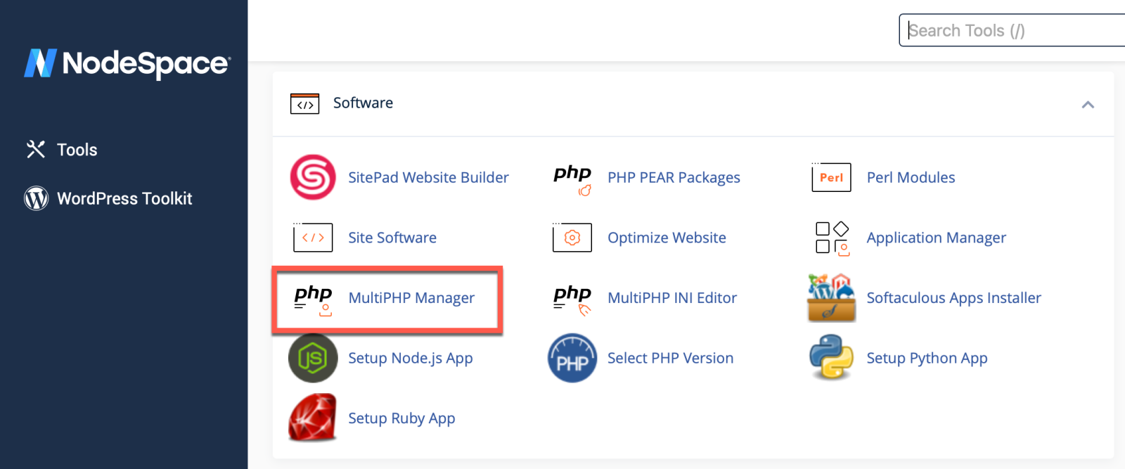 We offer a way to use different PHP versions per domain or subdomain on your account. Login to cPanel and locate the MultiPHP Manager in cPanel. Note: You should use MultiPHP Manager if you wish to have a different PHP version per domain or subdomain. PHP Selector ("Select PHP Version") will change the PHP version for the entire account. If you use PHP Selector, you will need to contact support to enable MutliPHP Manager.