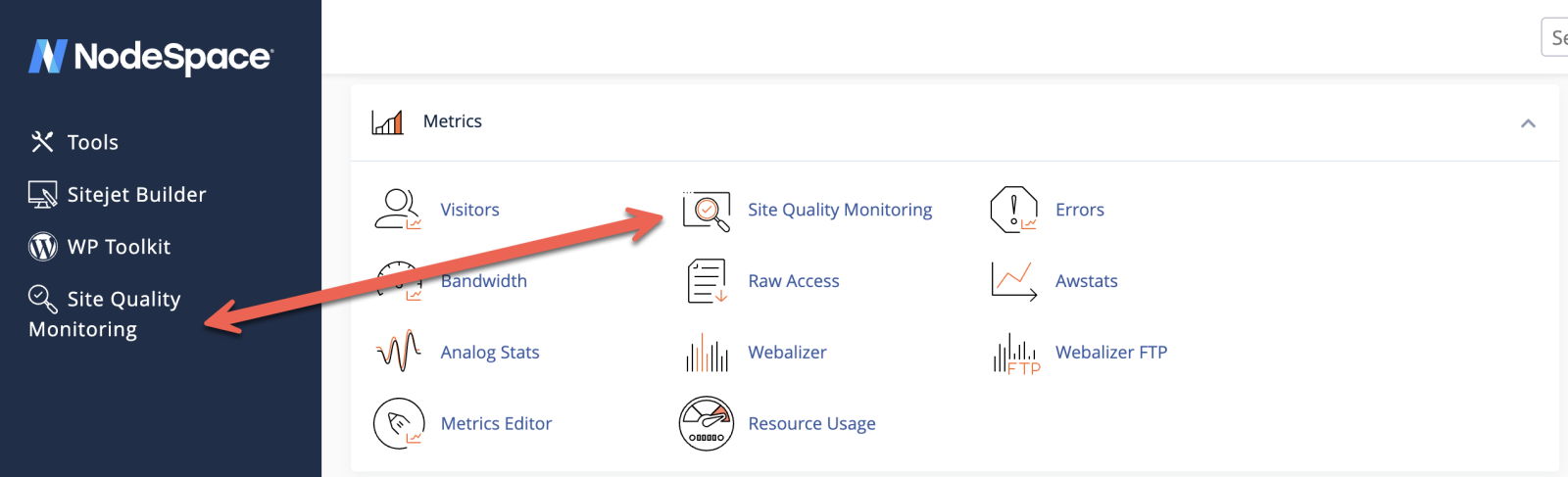 If you have a cPanel shared hosting account, you can utilize the Site Quality Monitoring tool to check your website automatically. To set up the Site Quality Monitoring tool, follow the following steps: First, login to your cPanel account. Once logged in, click on "Site Quality Monitoring" from the side bar or under "Metrics" from the main tools page.