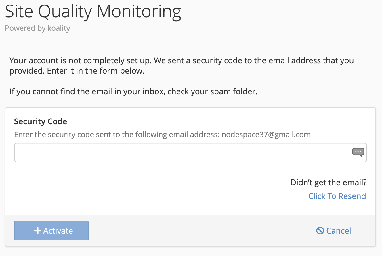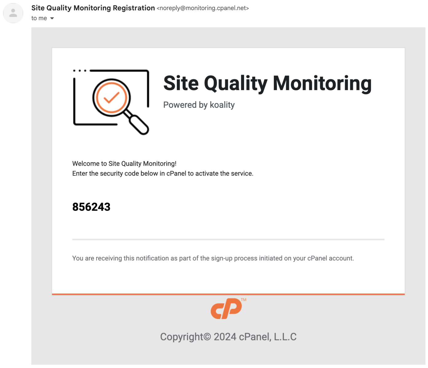 Insert the code back in the cPanel tab and click on Activate. cPanel will then setup your website for monitoring.