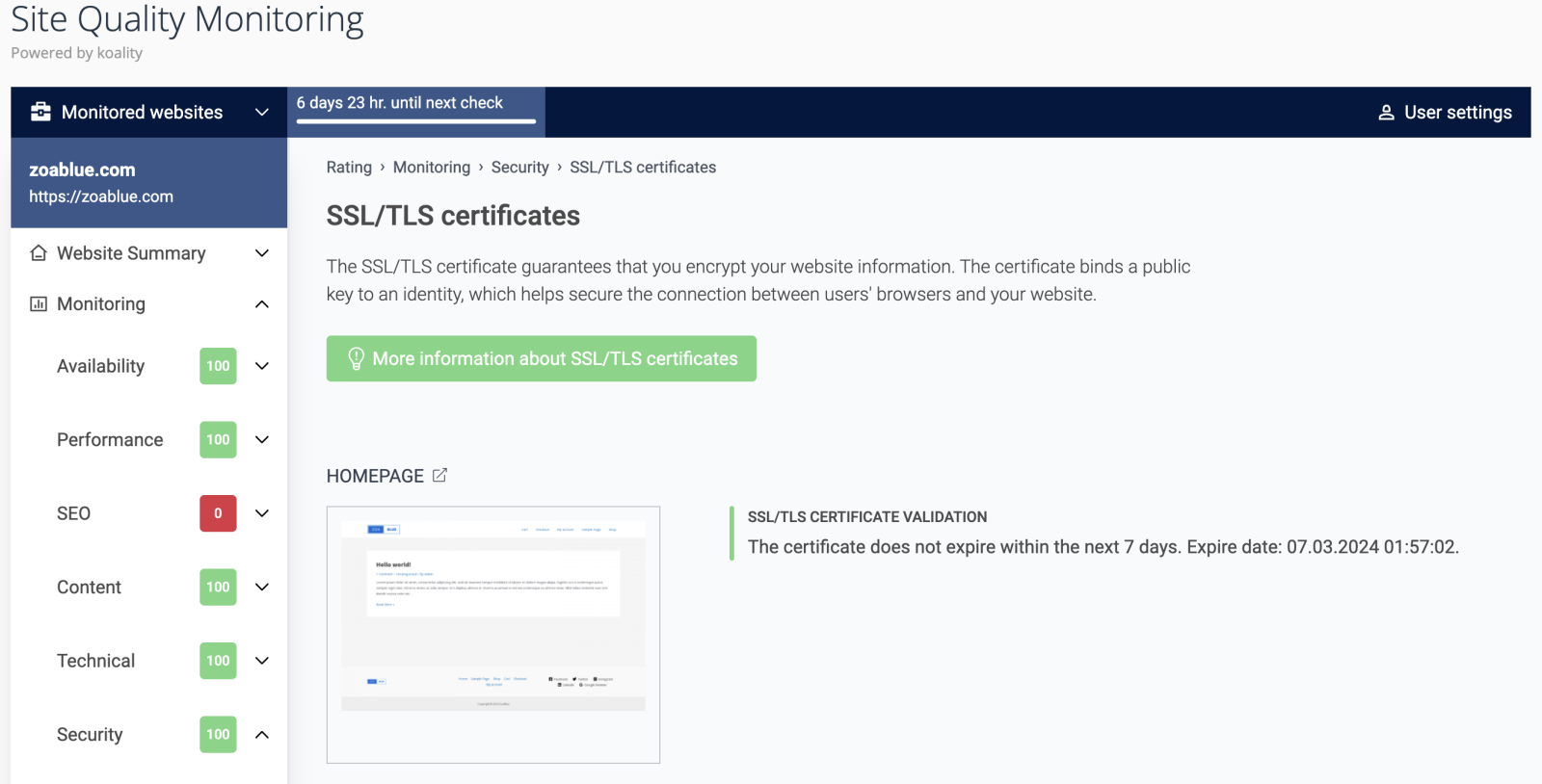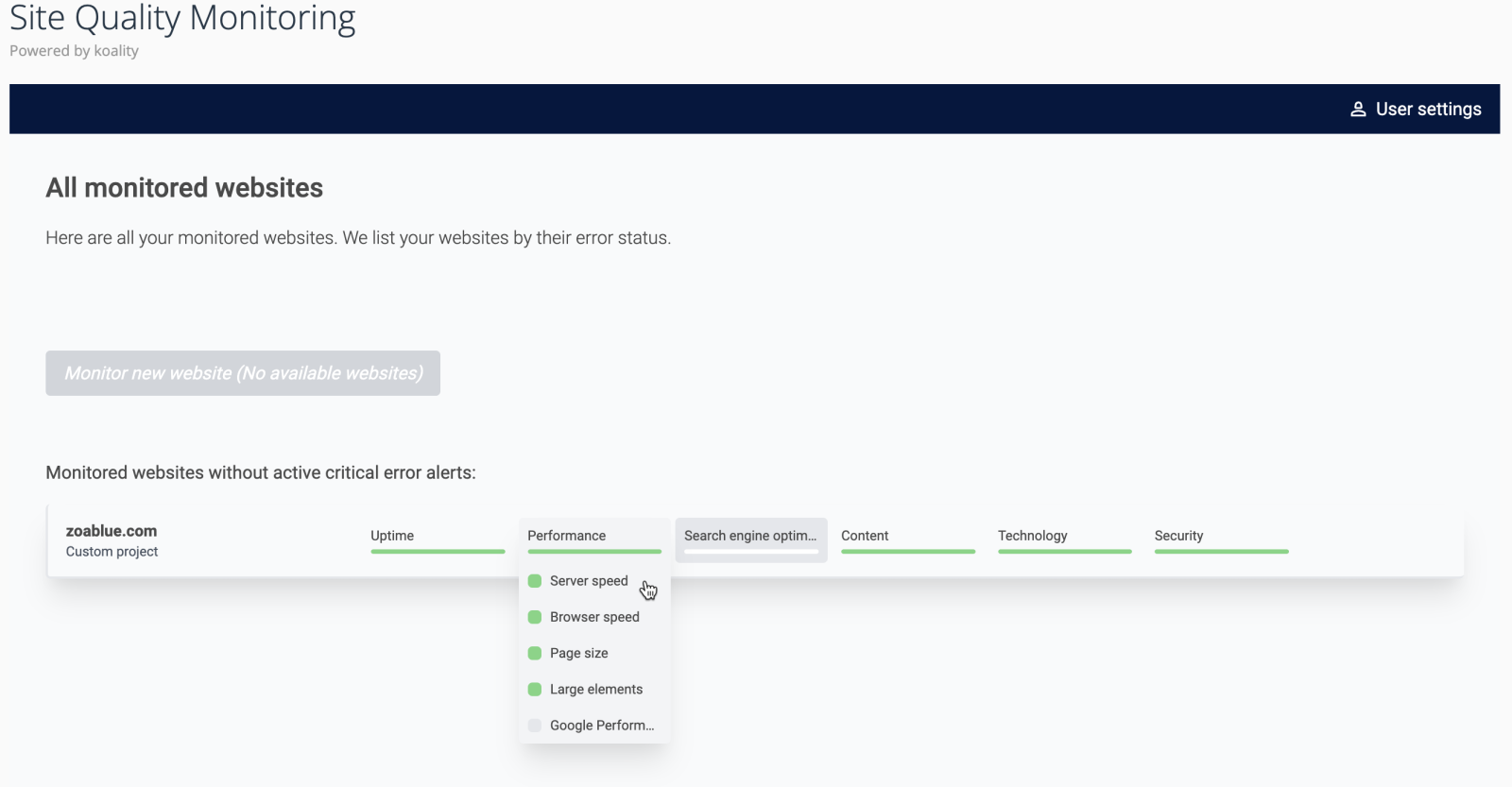Note: You can currently only monitor one website in your account. If you need additional monitoring or advanced monitoring, please consider adding 360 Monitoring.