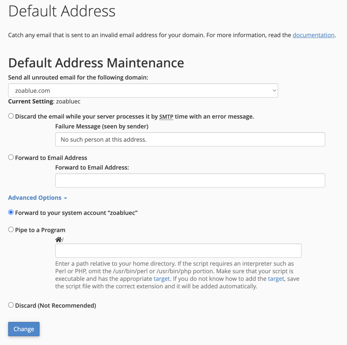 Every cPanel account comes with a default (or sometimes called a catchall) email account. In most cases, we recommend that you want to disable it but there may be reasons why you want to keep it or change how it functions. cPanel offers some flexibility on how to manage the default account. This article will walk you through how to do that.